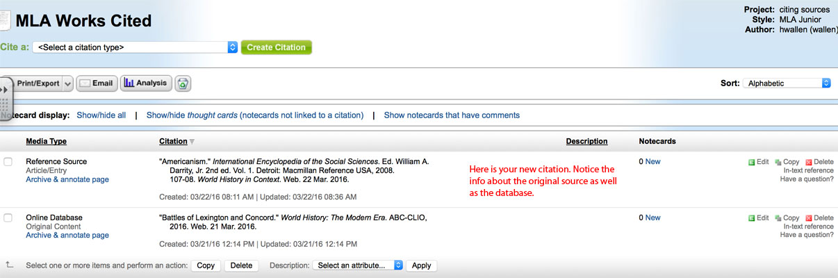 Step 5. Hit the submit button and return to your bibliography screen. Your entry should look like this: