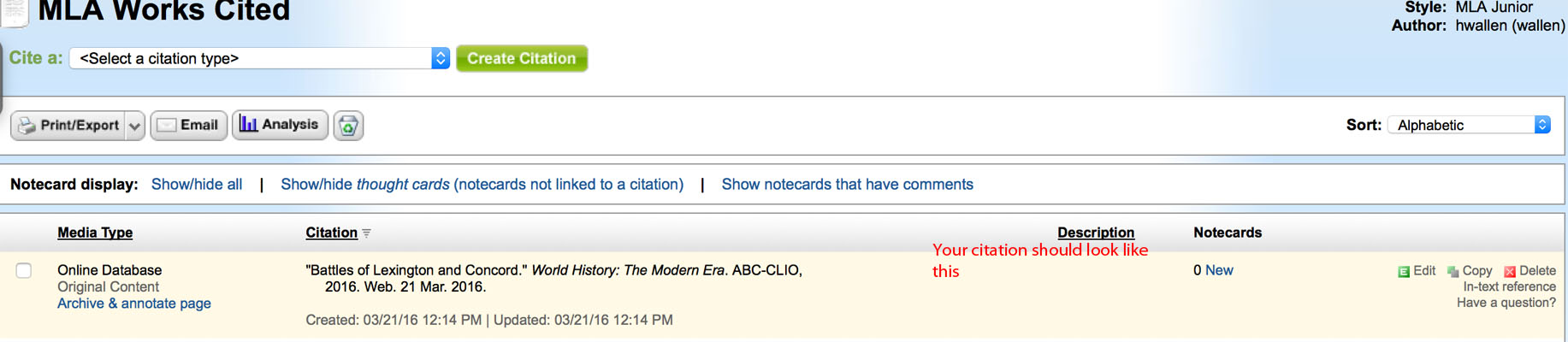 Step 6. Hit the submit button and return to your bibliography screen. Your entry should look like this: