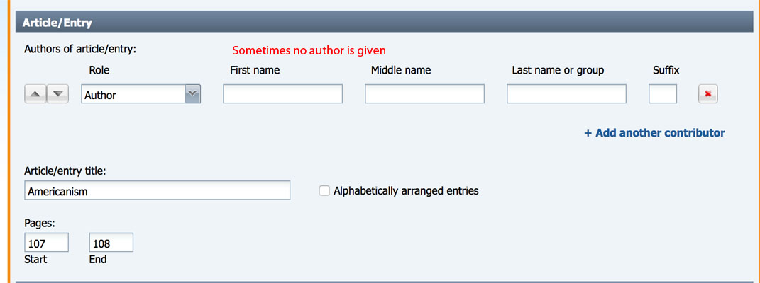 Step 4. Add the author (if one is listed), the article title, and the actual page numbers from the book where it was originally printed (if available). This information can often be found under "citation tools" on the right-hand side of your article screen.